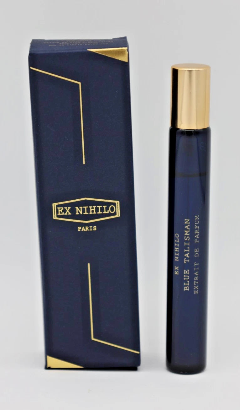 Blue Talisman Extrait de Parfum, an intensified reimagining that joins the brandÕs exclusive QUINTESSENCE Collection. This extrait represents a deeper, more immersive take on the original, designed to evoke a heightened emotional response through a denser and more luxurious composition. Developed in close collaboration with master perfumer Jordi Fern‡ndez, who worked with EX NIHILO for over five years, Blue Talisman Extrait explores new dimensions while remaining connected to the spirit of the original. Where the Eau de Parfum focused on citrus, amber, and woods, the extrait version pivots toward a fruitier and more floral orientation, anchored by a rich, ambery base.
